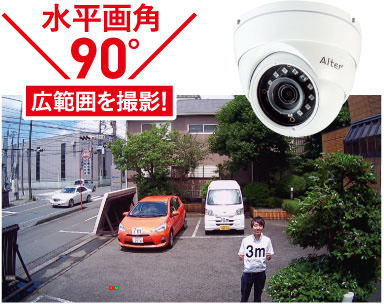 水平視野角を90°にすることで従来よりも広範囲を撮影できるようになりました!