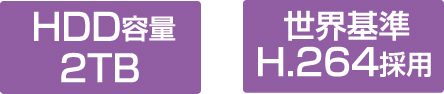 2TBのHDDと動画配信などでも使用されるH.264コーデックでフルハイビジョン(1080p)設定でも長期間の録画を行うことができます。