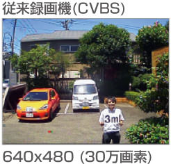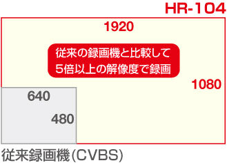 従来のアナログカメラ用のレコーダーと比較して最大で5倍以上の解像度で録画できます。