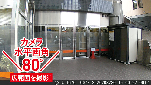 水平画角約80°の広角レンズで広い範囲を撮影できます。