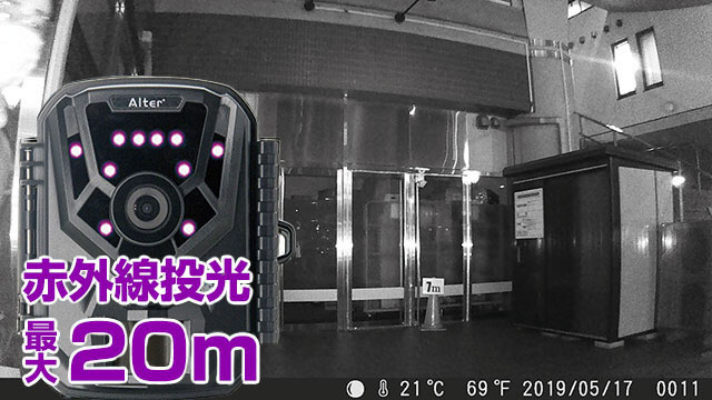 周囲が暗くなると自動で赤外線LEDが作動し白黒映像で撮影。