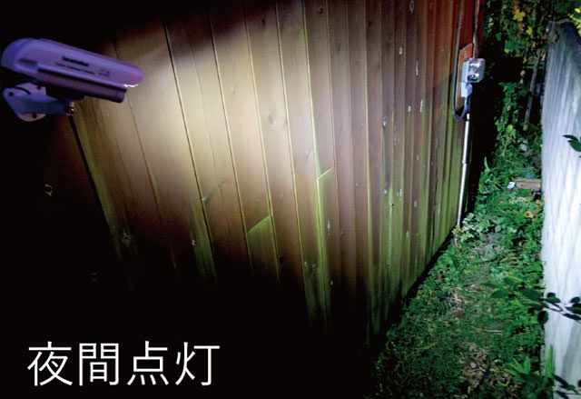 | ライト | 白色LED×1ヶ、約90ルーメン(LED球は交換できません) 〈点灯・点滅時間〉センサー検知から約30秒間点灯、センサー検知中は約2秒間隔で点滅 〈LED定格寿命〉約35,000時間 |