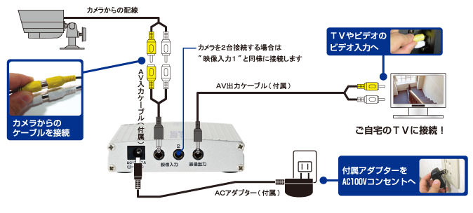 1.カメラを接続 > 2.SDカード挿入 > 3.電源を入れて、録画ボタンを押すだけ
