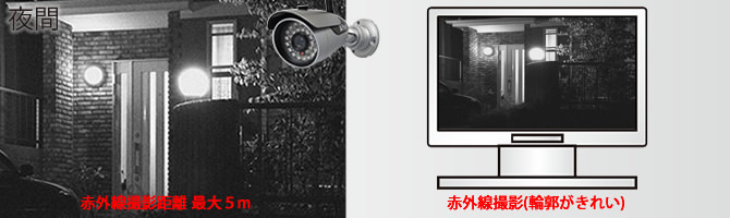 | 赤外線投光距離 | 最大5m (LED30個) |