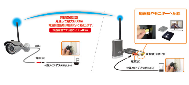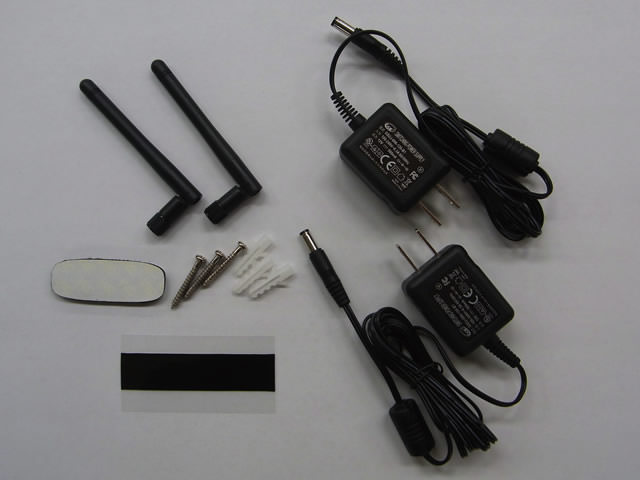 カメラ本体、無線受信機、無線アンテナ、ACアダプター、