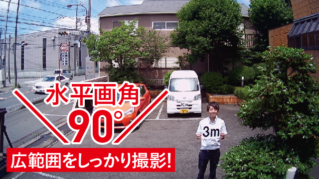 広角レンズを採用し(水平:90°垂直:50°)広い範囲の撮影ができるようになりなりました!