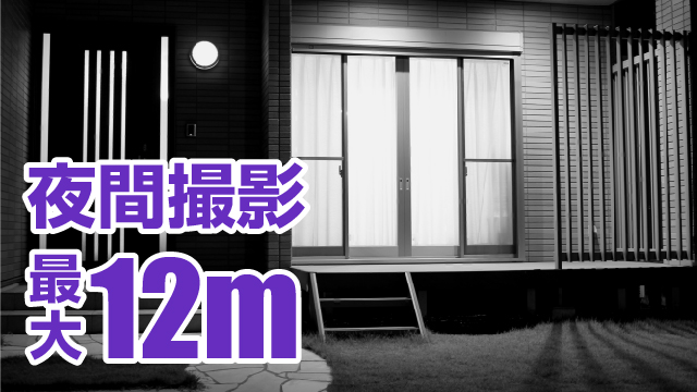 周囲が暗くなると自動で夜間撮影モード(赤外線撮影)に切り替わります。※夜間撮影時はモノクロ映像となり昼間の撮影と比較してノイズが多く映像の判別が難しくなります。