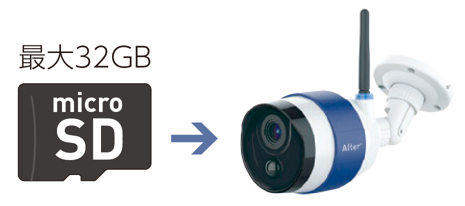 市販のmicro SDカードを利用でき、上書き録画ができるので、撮り逃しの心配もありません。最大容量の32GBを利用すれば、上書きなしで約30時間の録画可能です。録画したデータはスマートフォンのアプリから、かんたんに再生が可能です。