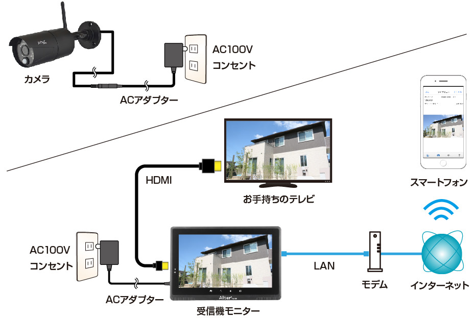 近くに電源さえあれば、取り付けに特別な資格は必要ありません。カメラを壁面や天井に固定して電源を取るだけの作業で設置が行えます。DIYが得意な方ならご自身で設置可能です。※DIYがご自身で難しい場合は、販売店や設置業者へご依頼ください。 弊社では出張工事、修理等のサービスは行っておりません。